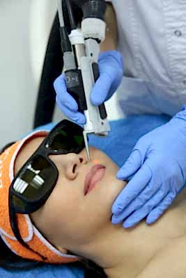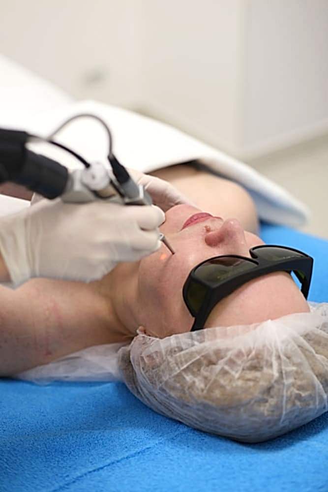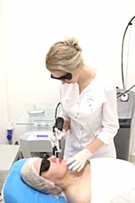 На первом этапе процедуры врач производит воздействие неодимовым лазером Cynosure устраняя покраснения и воспаления, на Pin-Up этапе производит работу с сосудами.